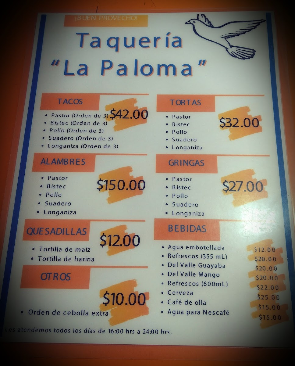 TAQUERIA LA PALOMA Menu (Update 2025)